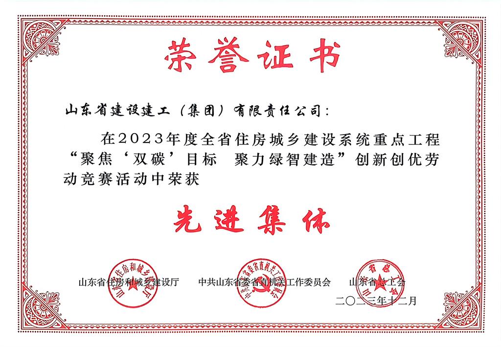 2023年度全省住房城鄉建設系統重點工程創新創優勞動競賽先進集體